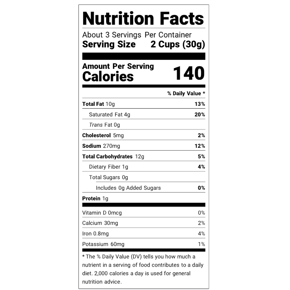 Fresh, tangy goodness. We love this crunchy snack so much we had to dedicate a flavor to it! White cheddar, vinegar and dill create this perfectly balanced (staff favorite!) flavor.