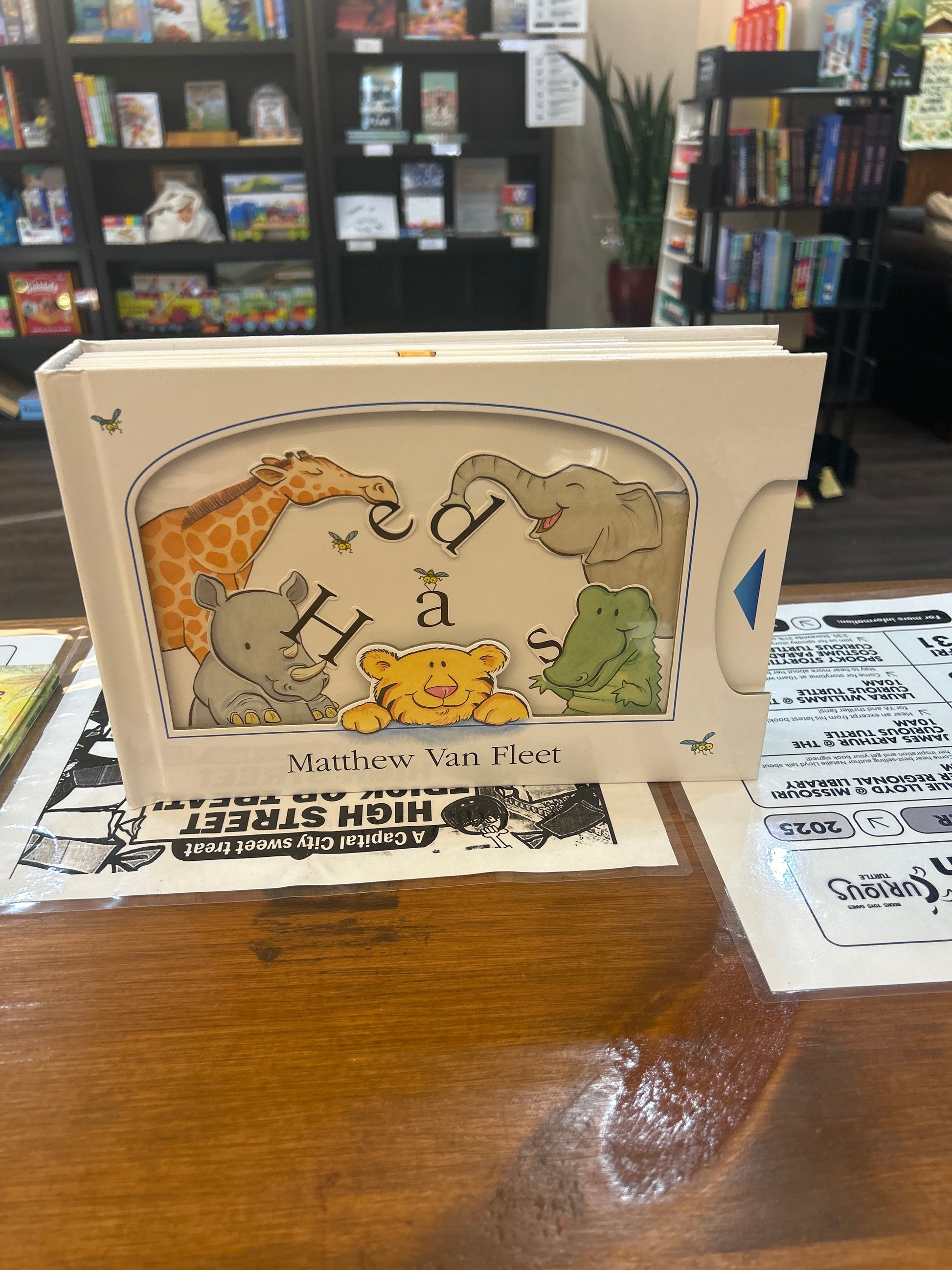 It features interactive pull-tabs, touch-and-feel textures, and a fold-out finale, designed to engage toddlers and young children as they explore animal “heads,” opposites and actions.