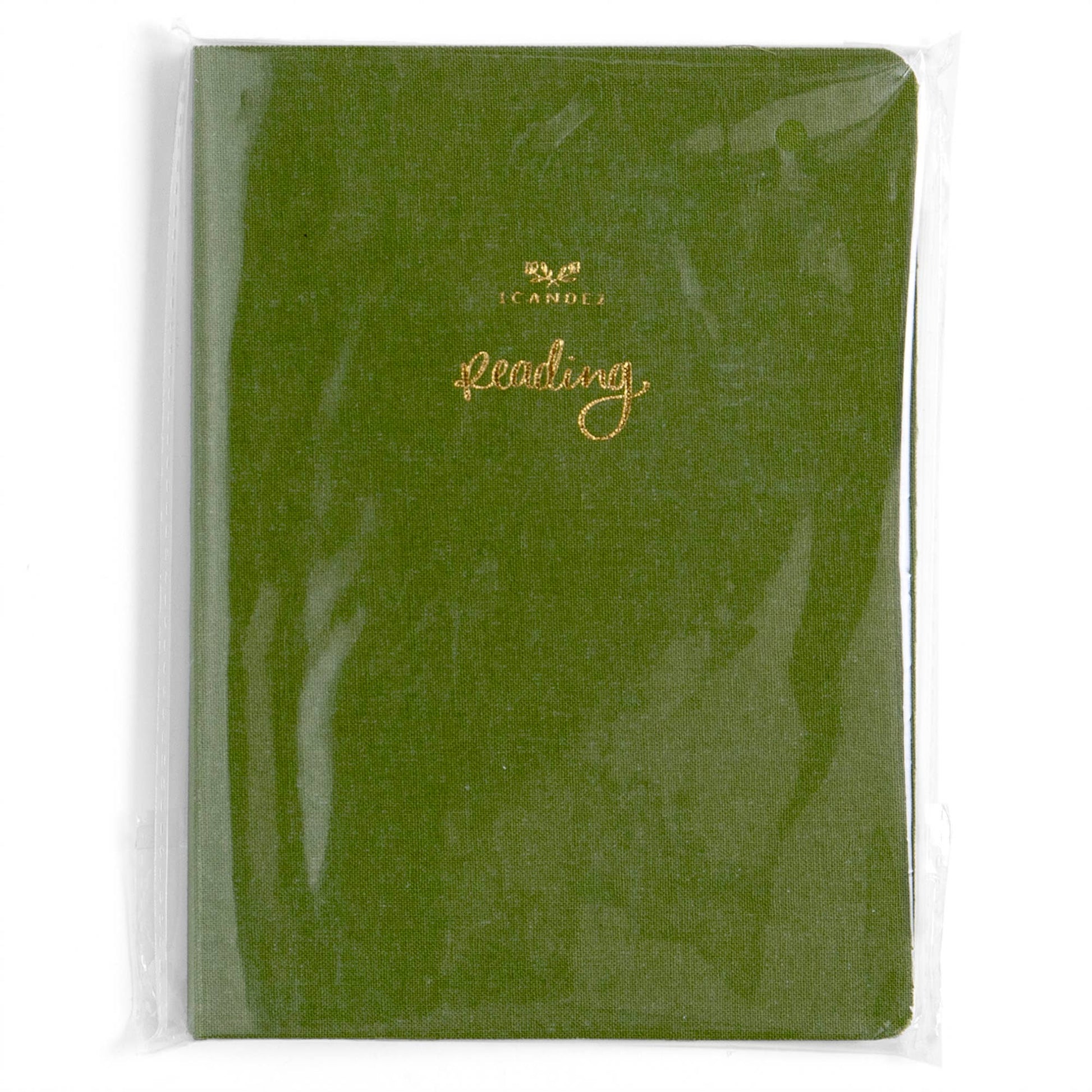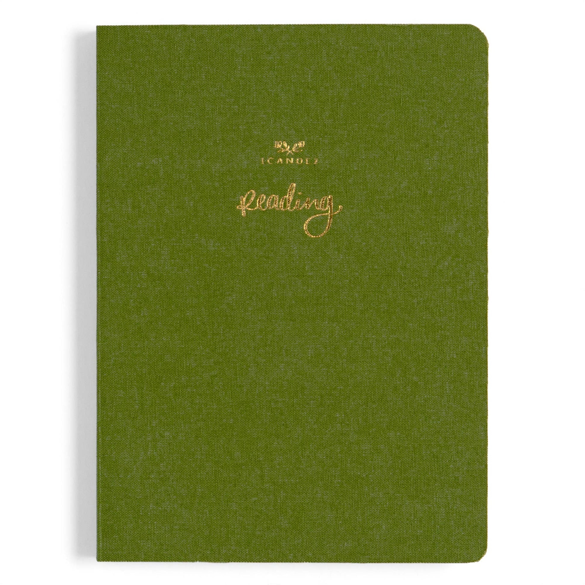 Features | Space to review 64 books, linen paper back cover, gold foil