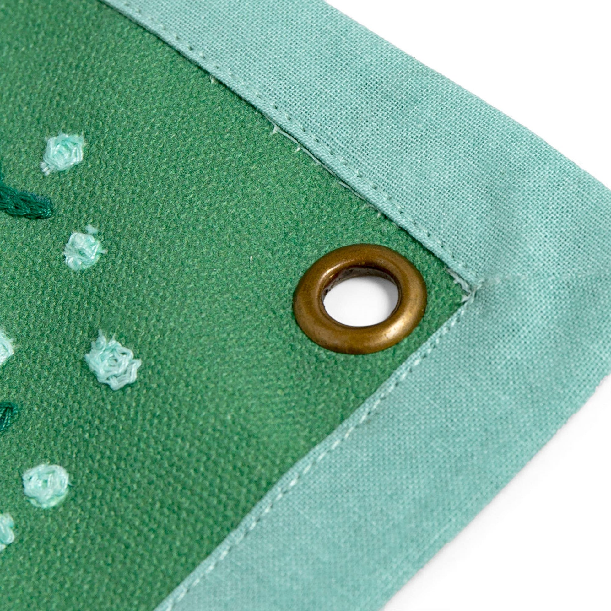 • Features: Canvas banner, chain stitched embroidery, brass grommets, and a canvas hem edge